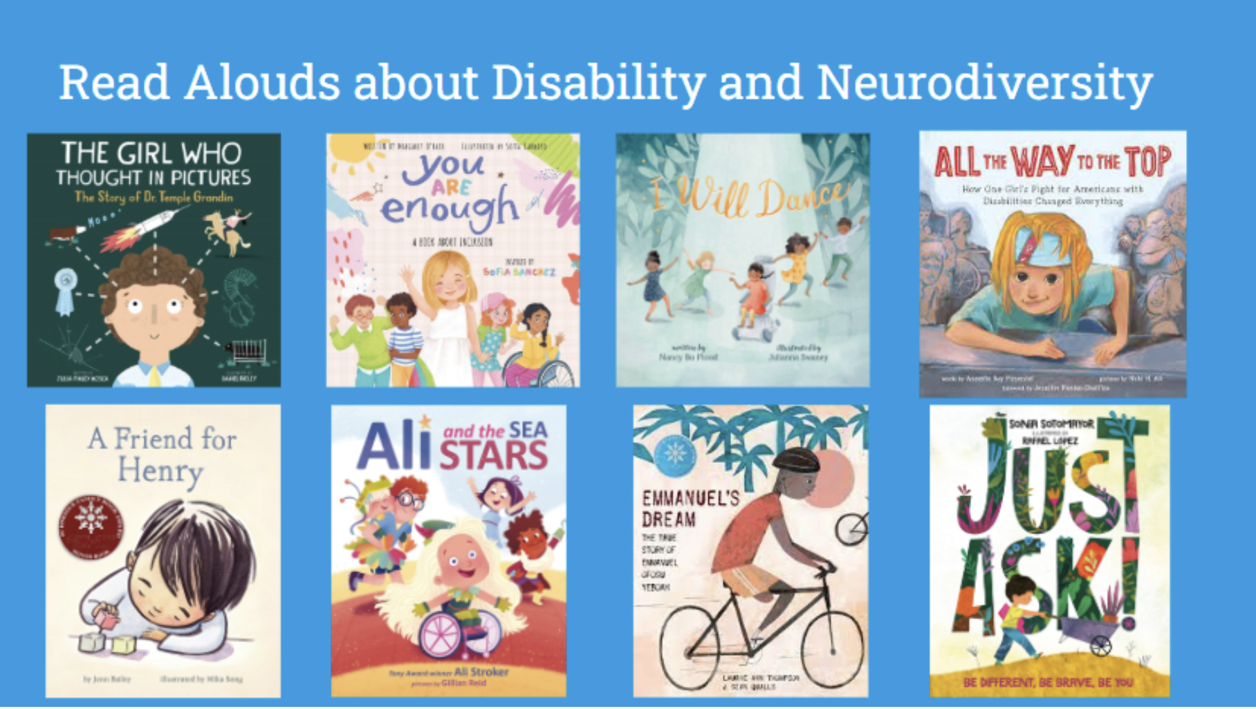 - I would highly recommend following this format (information, video of a person with this disability, and a read-aloud) and including lessons for any other disabilities you may have represented in your classroom